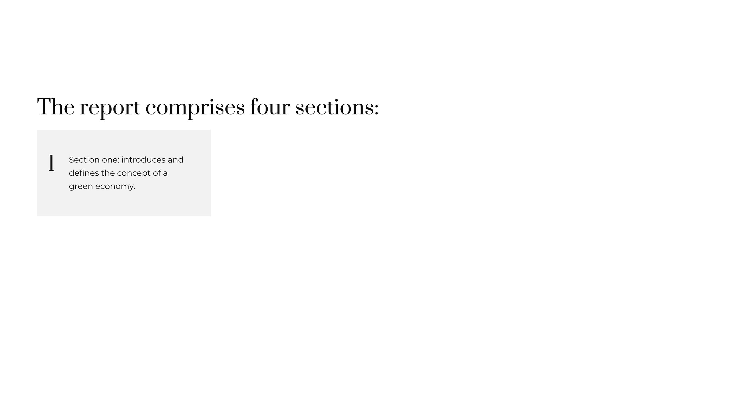 There are multiple definitions of and frameworks for a green economy; however, it is broadly agreed that a green economy prioritises the development of economic activities, infrastructure, and assets – through both public and private investment – that enables lower carbon emissions and pollution; greater energy and resource efficiency; and the preservation of biodiversity and ecosystems to ensure that natural capital remains in place for future generations . There is also consensus that green economies emphasise skills, employment, and the positive social impact of the environment, as well as the importance of people’s well-being.