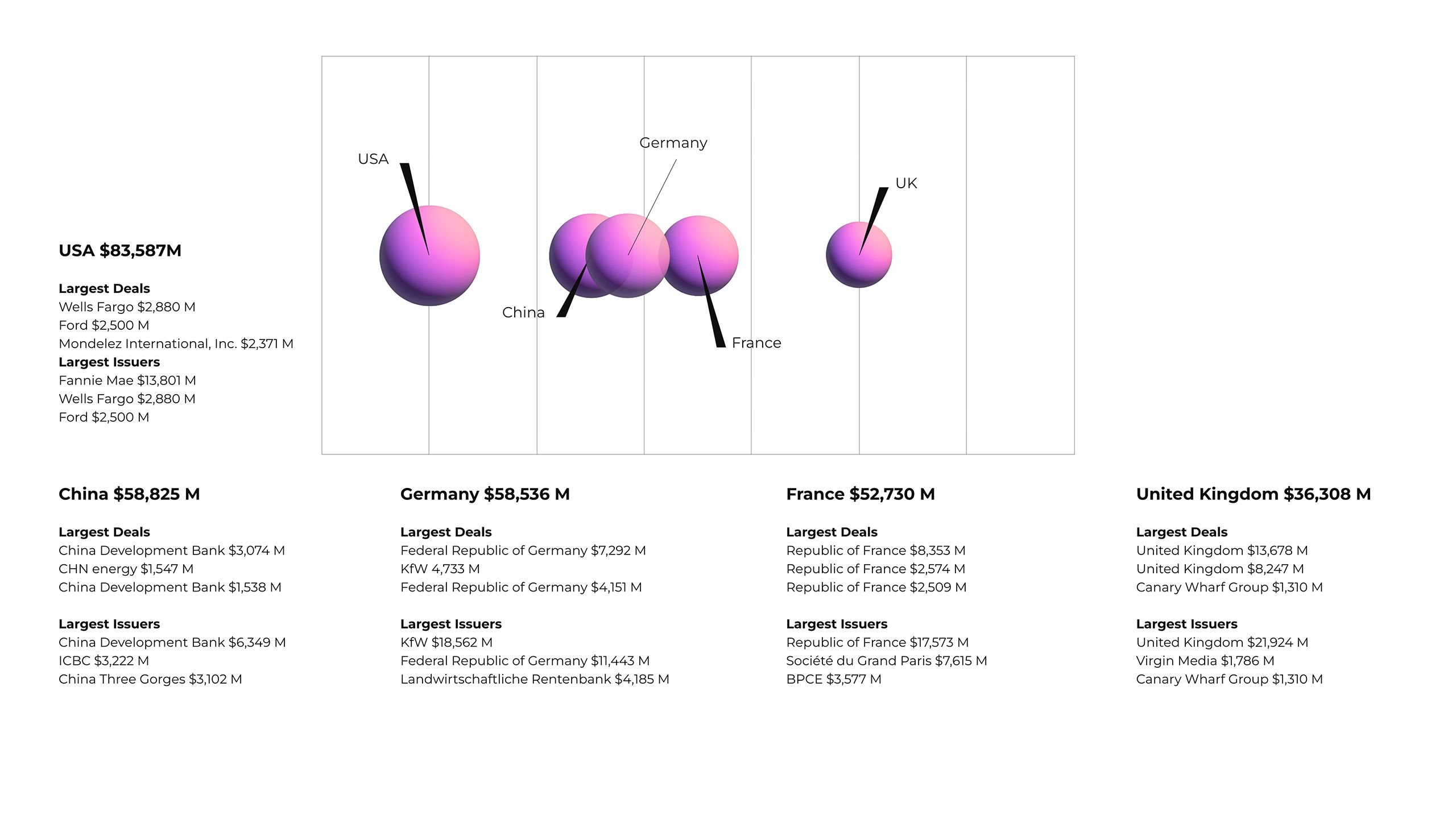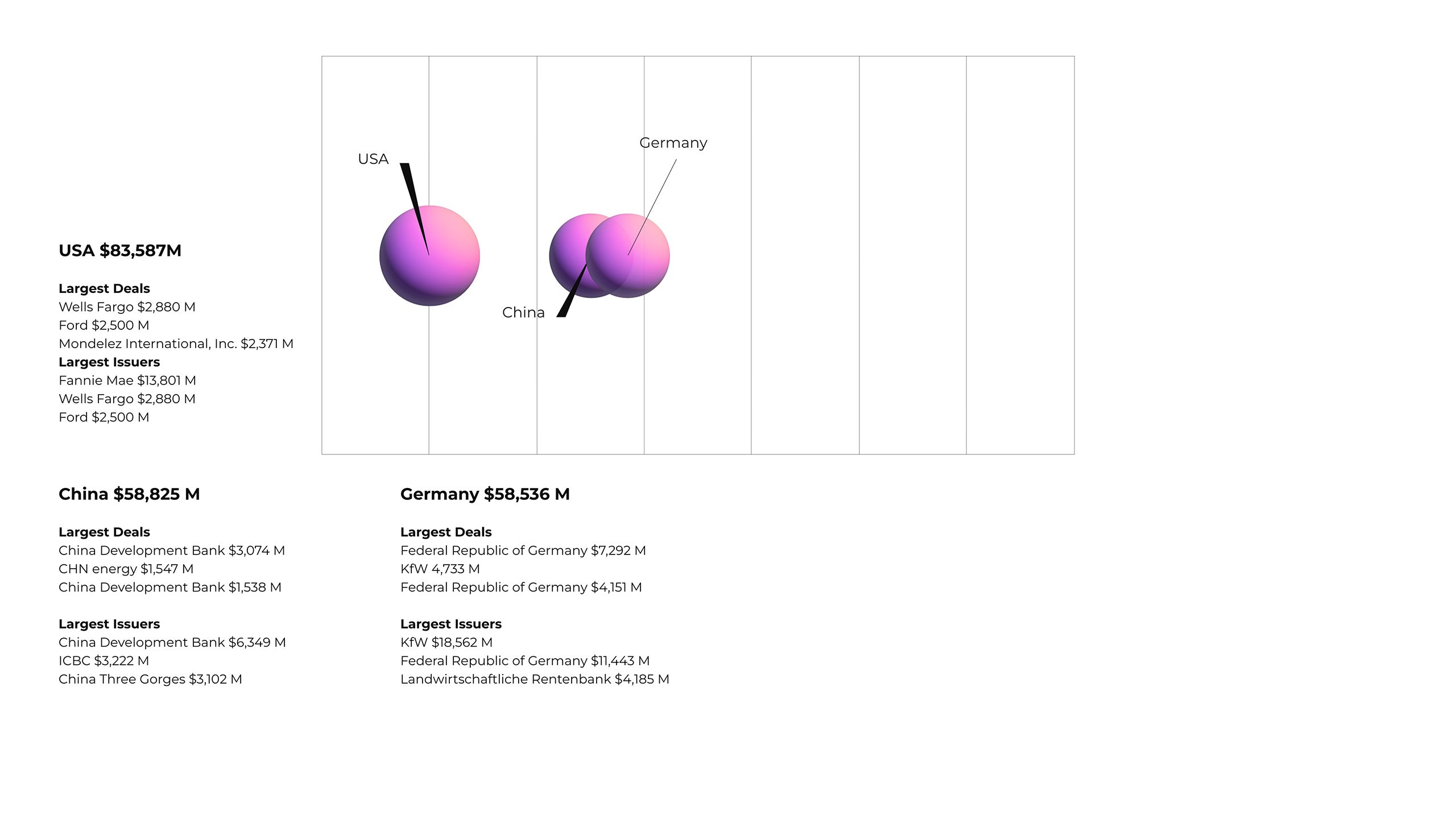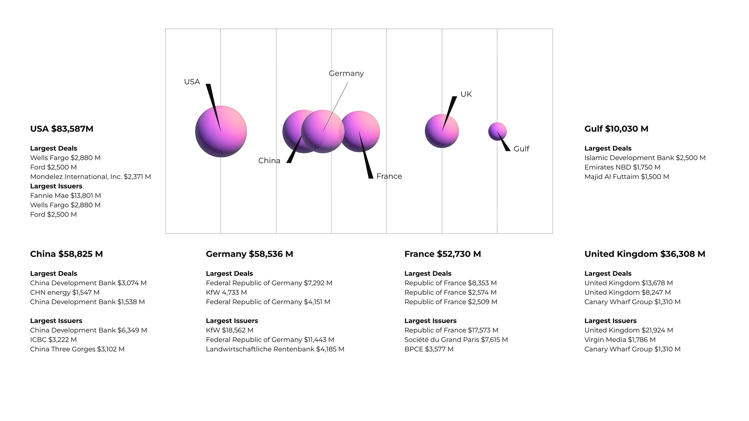 Figure 3: Green bond issuing markets, 2021 (US$ million)