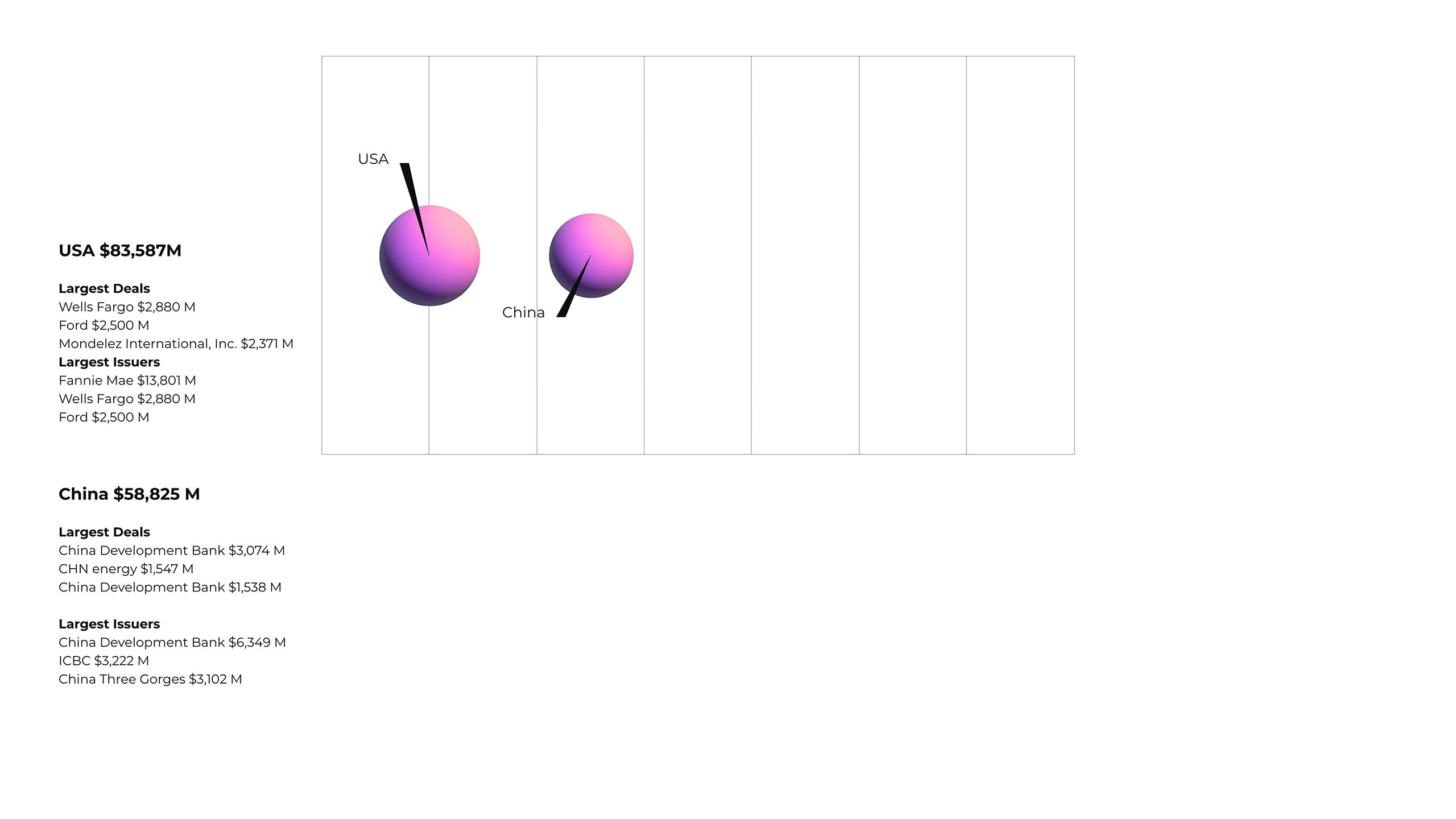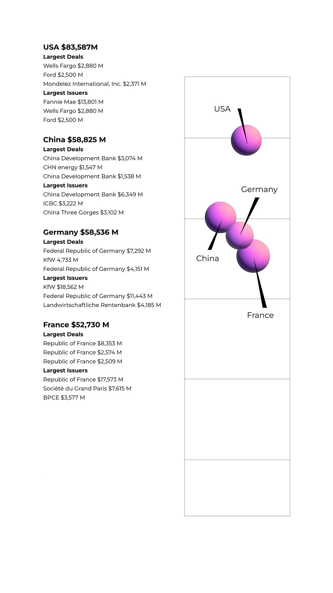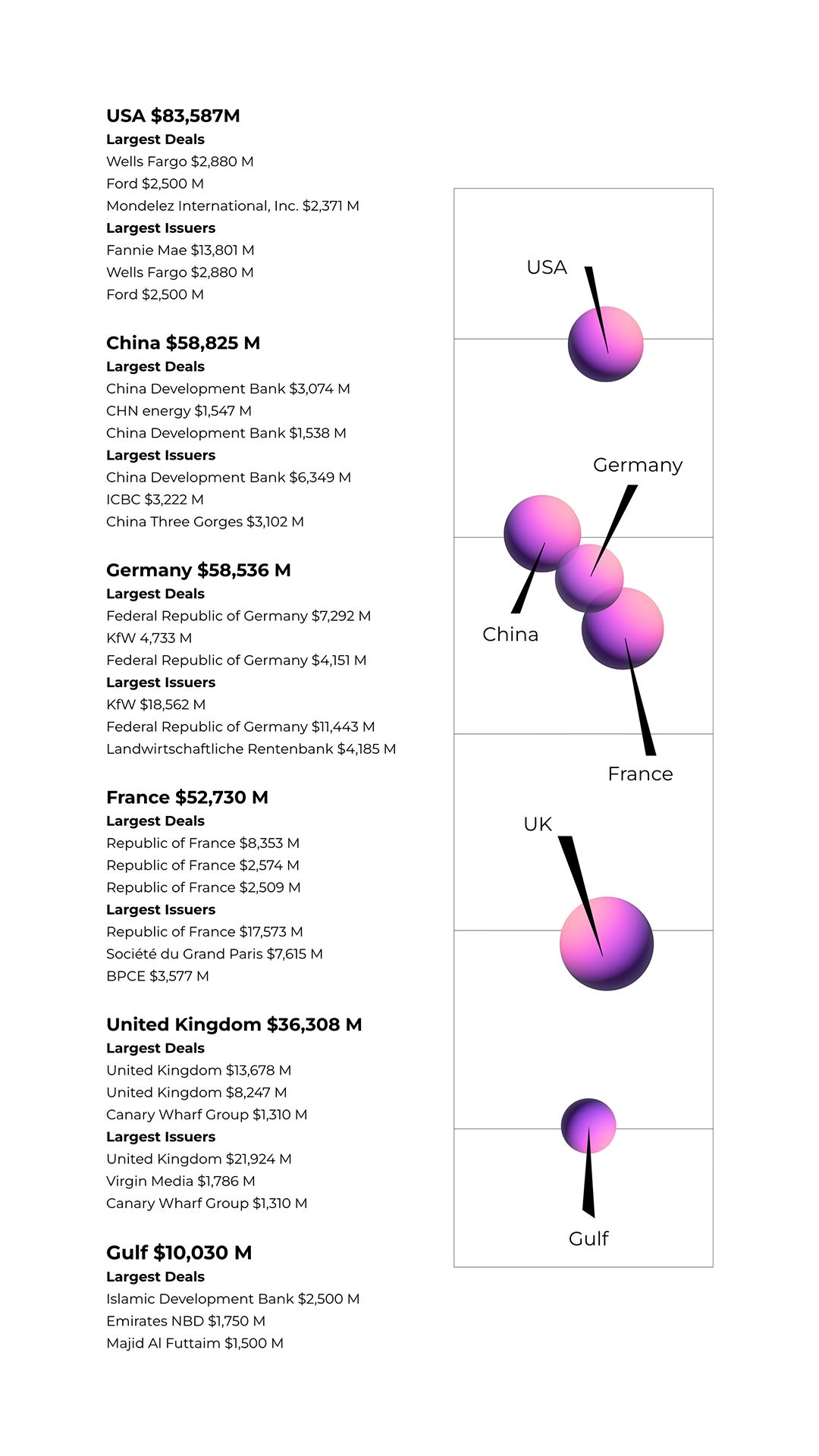 Figure 3: Green bond issuing markets, 2021 (US$ million)