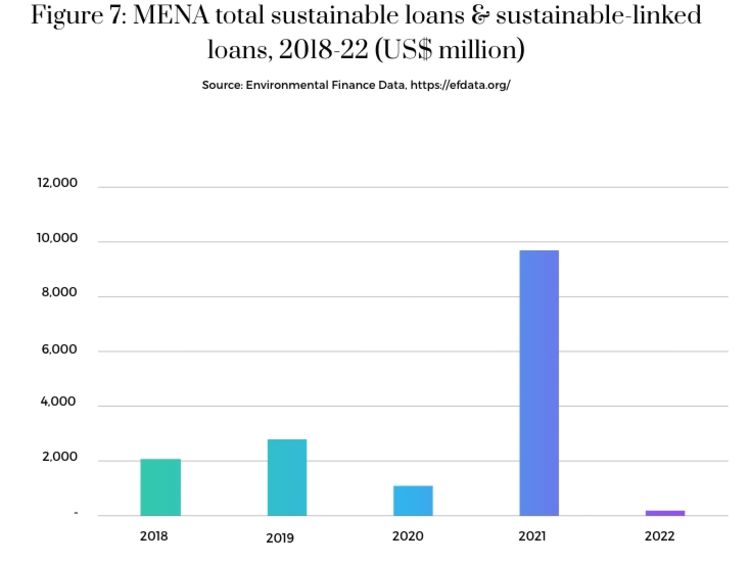 Figure 9: MENA green loans by sector, 2018-22 (%)